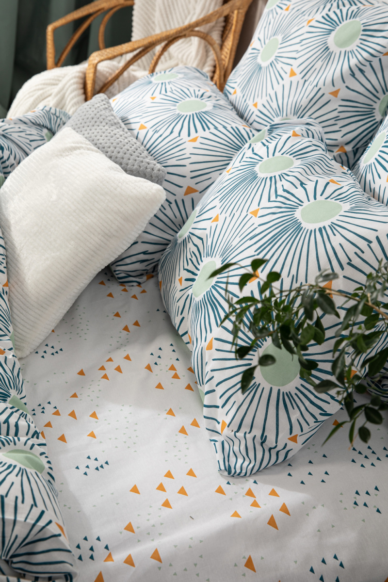 1,5 сп: пододеяльник 215х145-1 шт, простыня без резинки 214х150-1шт, наволочки - 2 шт.